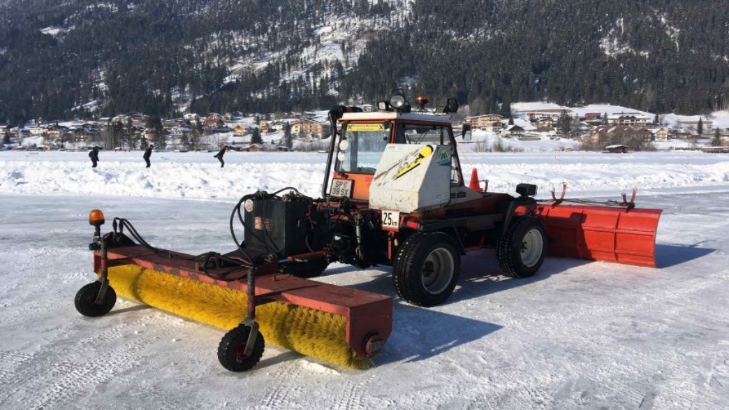 6 - Norbert Jank ist ein besonderer Eismeister, weil er auf einem natürlichen See arbeitet. Eismeister arbeiten sonst meistens in Eissporthallen und bearbeiten künstliche Eisflächen. Er hat sich alles selbst beigebracht. Seit über 50 Jahren arbeitet er schon auf dem Weissensee. Anfangs hat er Besucher mit Pferdeschlitten über das Eis gefahren.